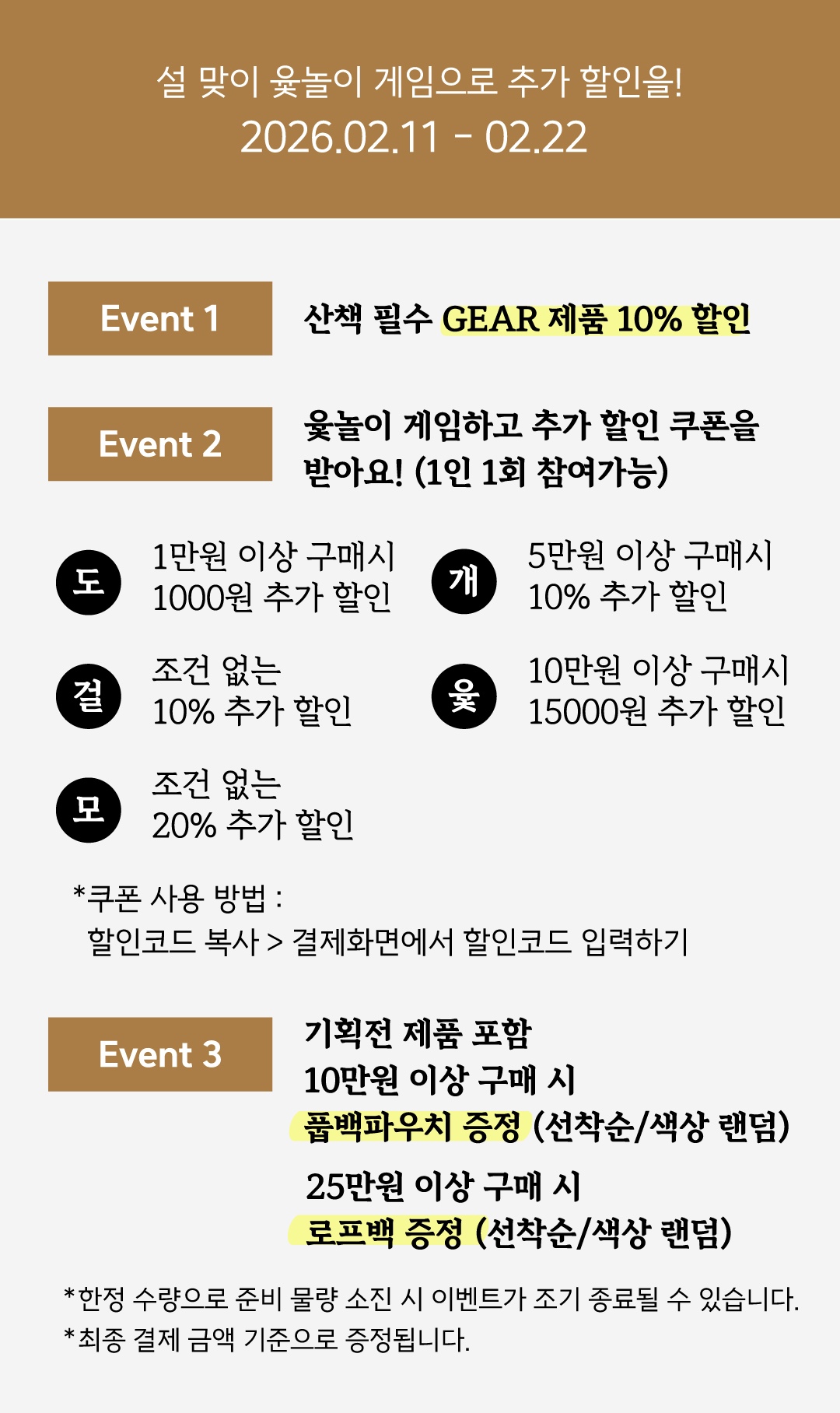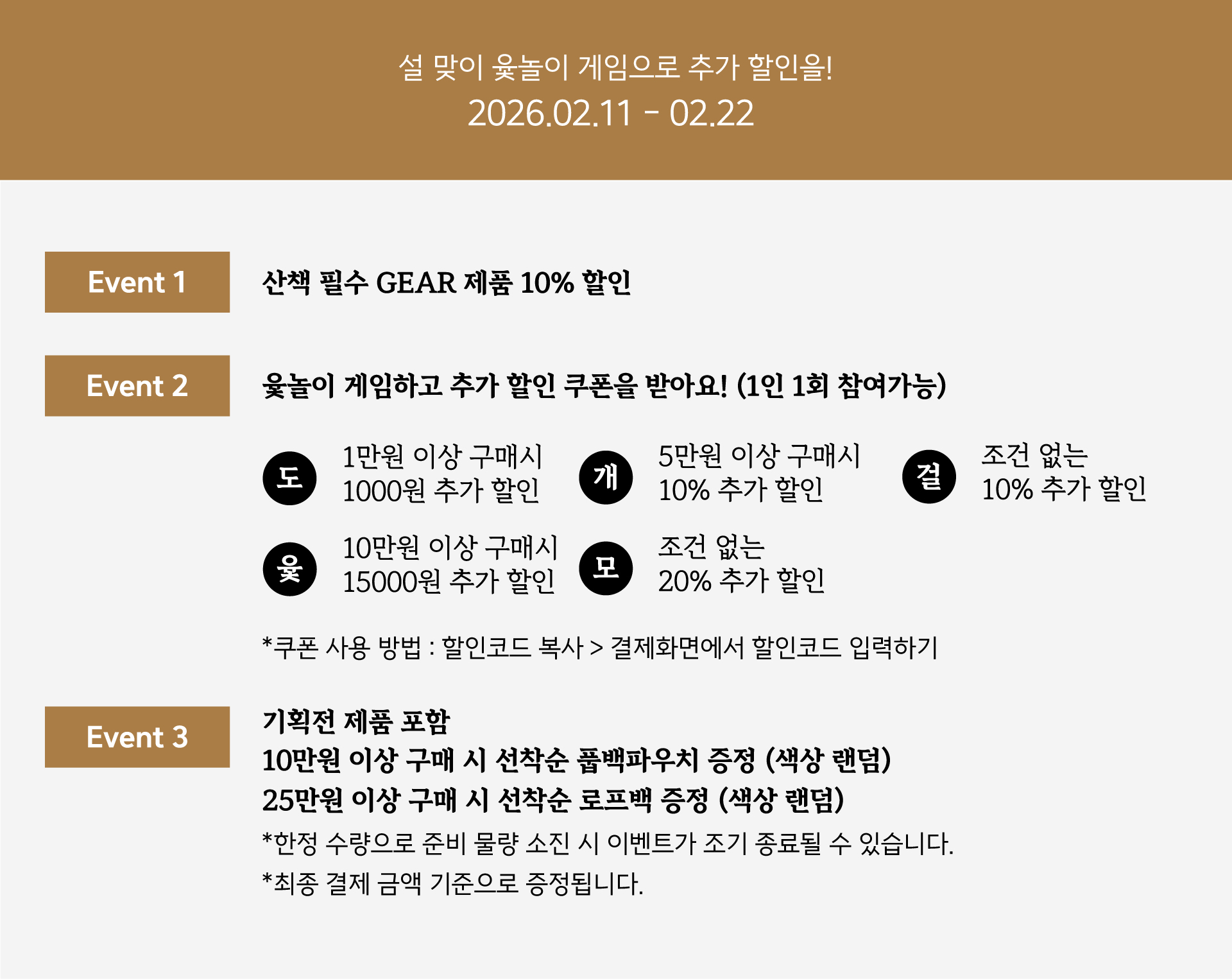 윷을 던져 행운의 할인 쿠폰을 받으세요! (1회 참여 가능)