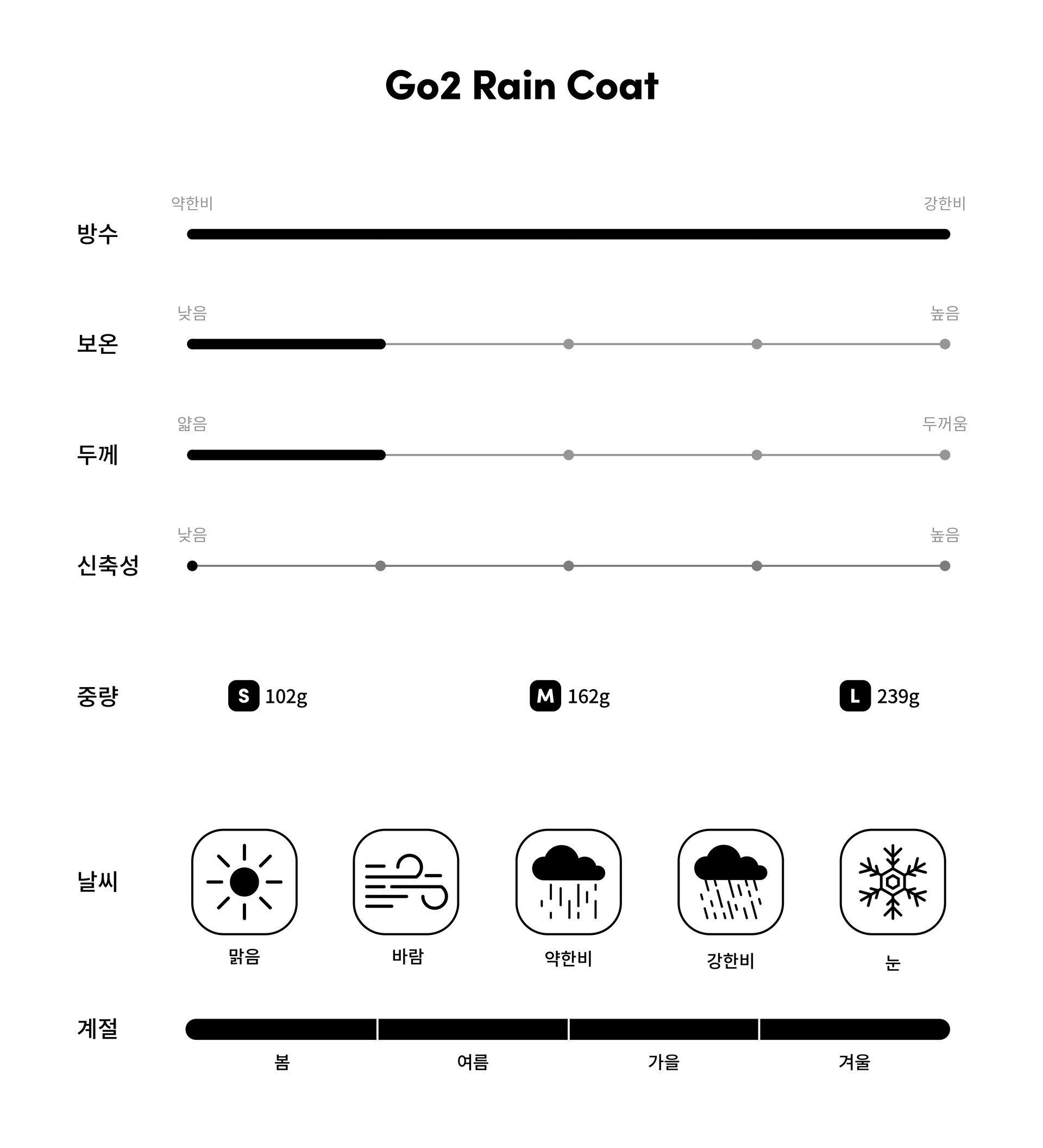 10,000mm 발수력을 제공하는 하이포라 코팅 원단으로 폭우에도 끄떡없이!