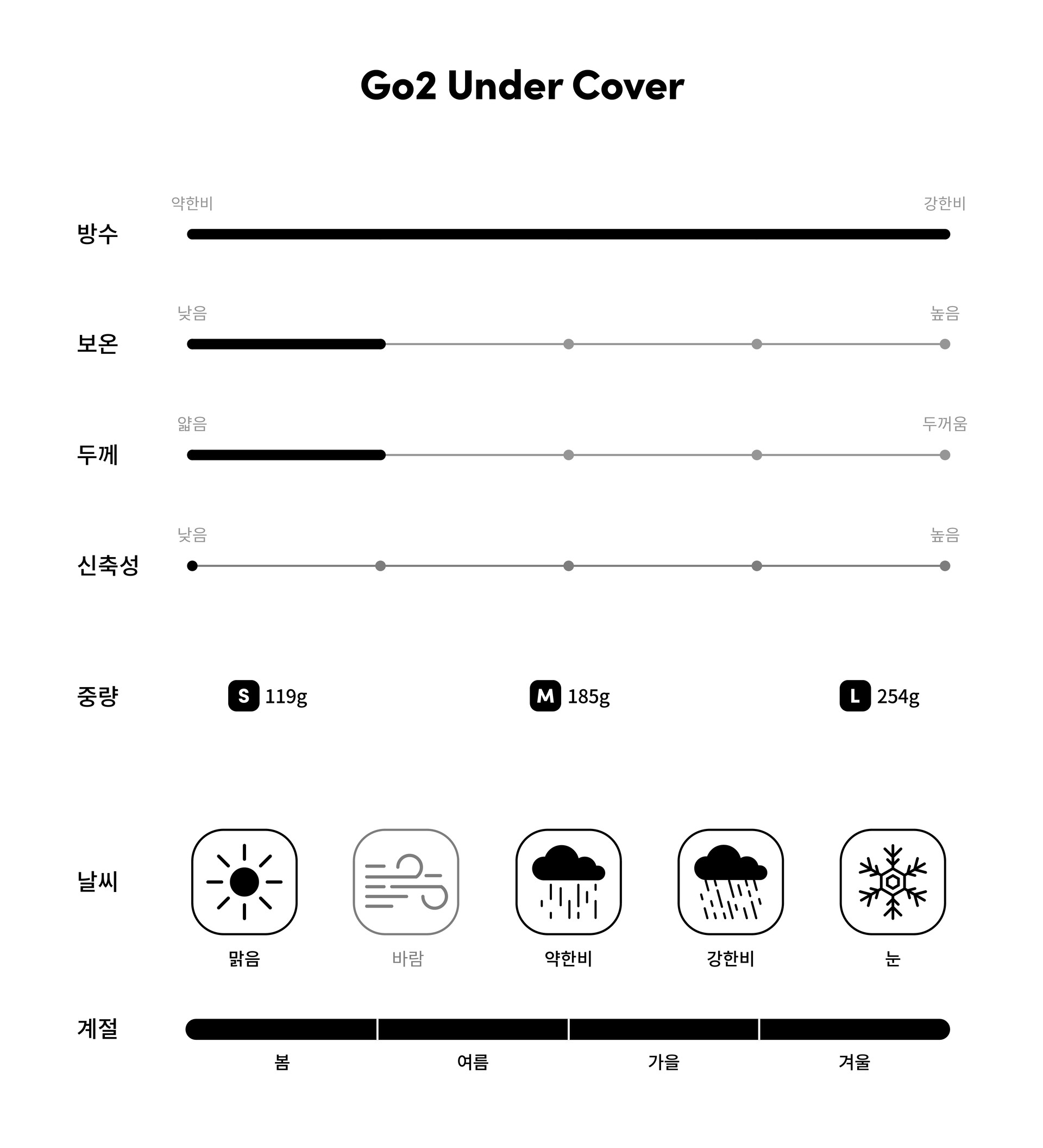 10,000mm 발수력을 제공하는 하이포라 코팅 원단으로 폭우에도 끄떡없이!